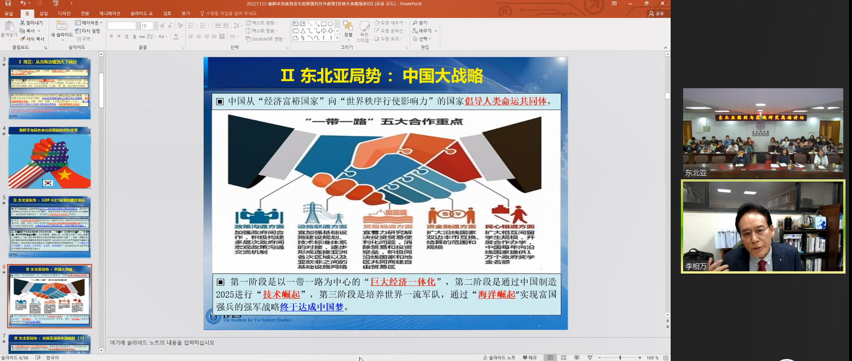 2022年11月23日,“东北亚国别与区域研究高端讲坛”之“朝鲜半岛局势变化与韩国的对外政策”在成人论坛