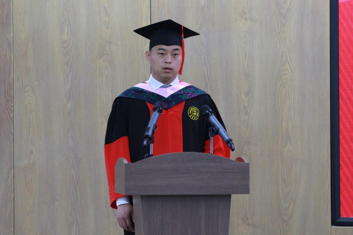 宝崇峰同学首先对学院老师、同学送上真挚的感谢,并祝贺在场的同学为三年的勤勉时光画上圆满的句号。接下来,他基于对“求成者”的理解,阐述了对走出校门之后生活的自我要求和期望,希望与在场同学共勉,一起成长为勇敢逐梦、新时代能担重任、可堪大用的有志青年。
